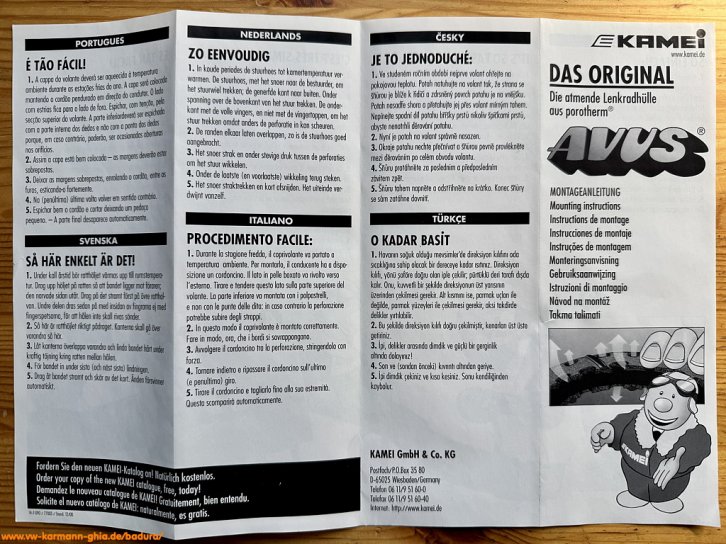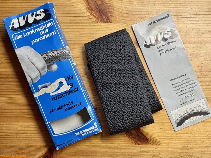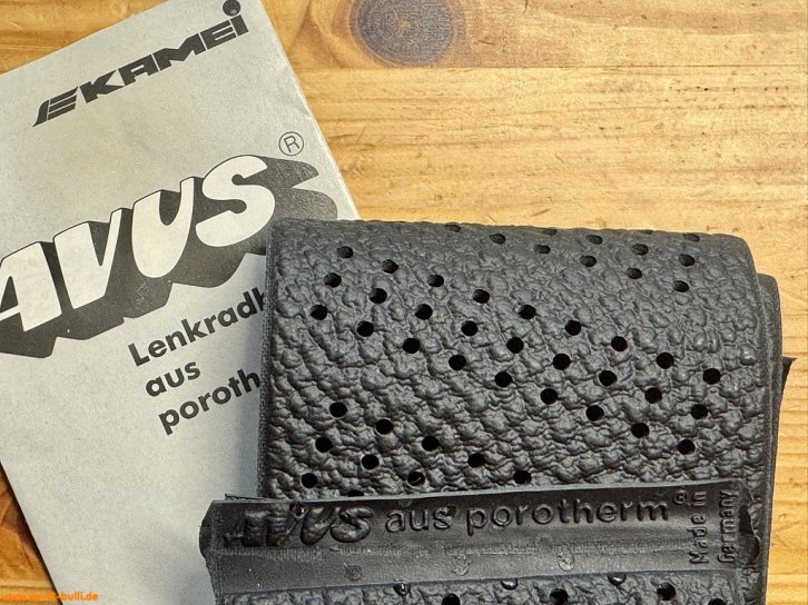 Abhilfe schafft da eine aufgeschäumte Lenkradhülle. 1964 kamen die Lenkradhüllen von KAMEI auf dem Markt. Erst als Modell AVUS in schwarz, rot, teak. Später auch als AVUS super oder AVUS atmos für PKW.