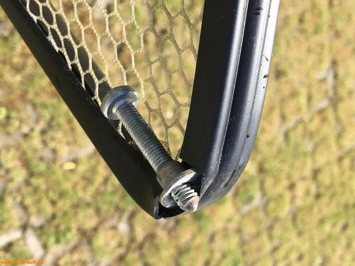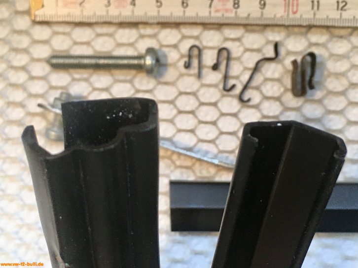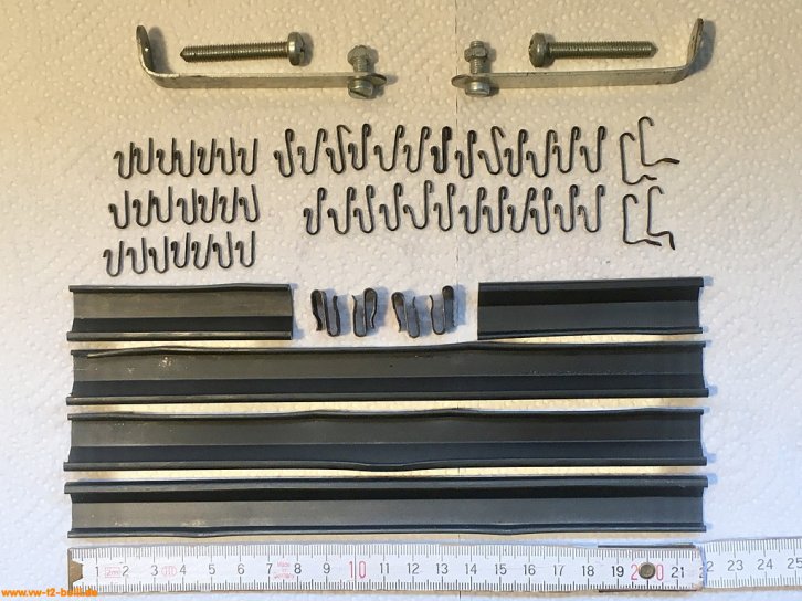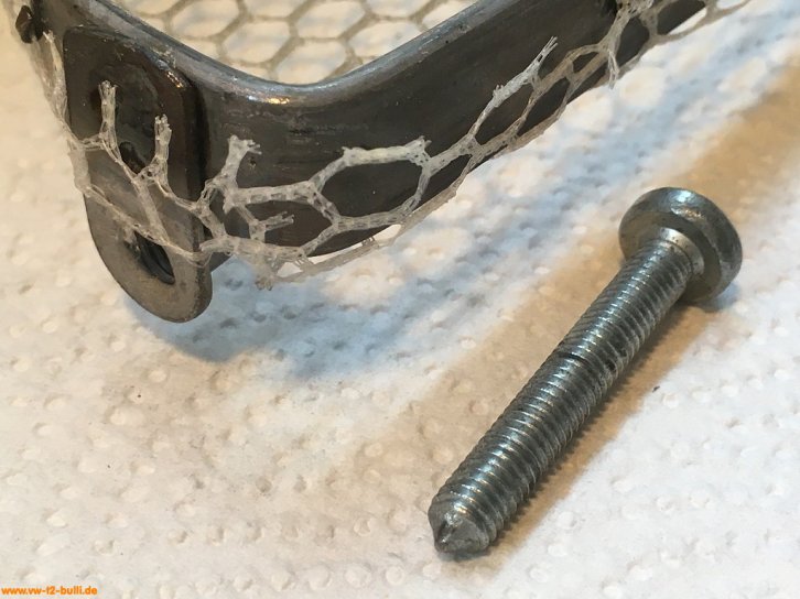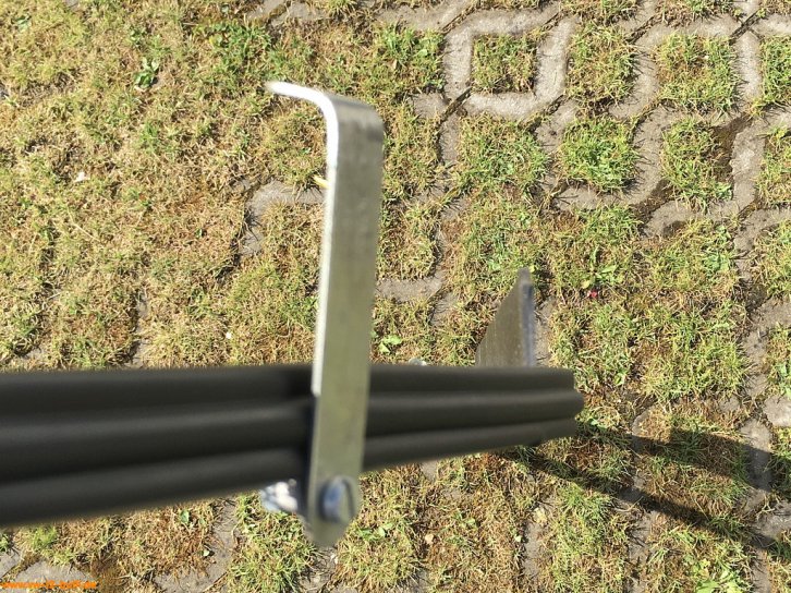 Diese hat nach vorne zwei Haltebügel zum Anschrauben und zu den Seiten zwei Schrauben zum Festklemmen in die Seitenwände bzw. deren Teppich.