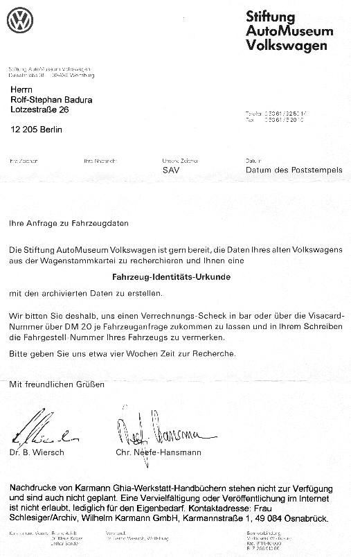 [ Das KARMANN Ghia Forum ] Geschrieben von Rolf-Stephan Badura am 02. März 2001 20:23:28: